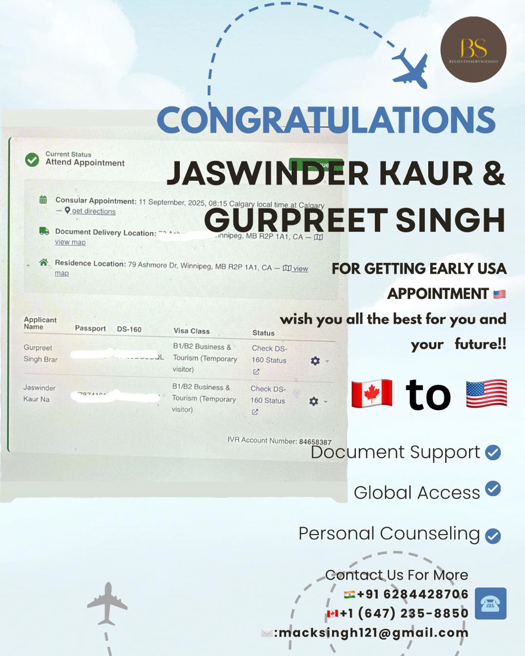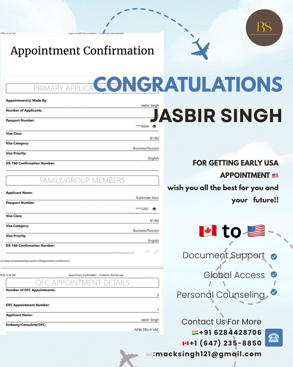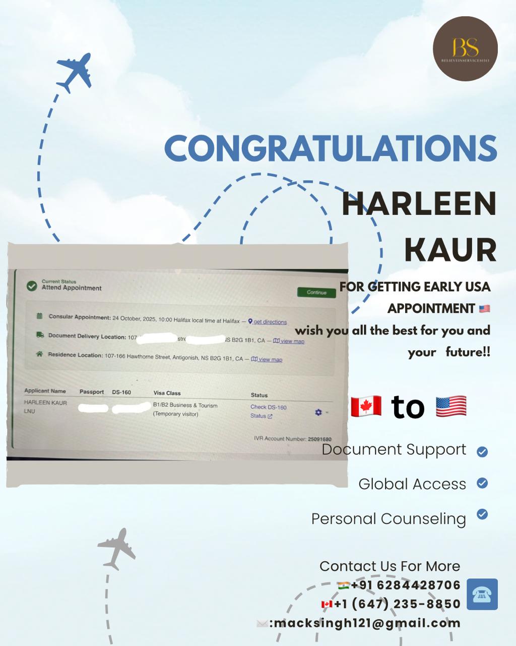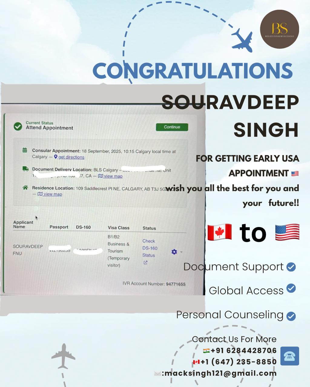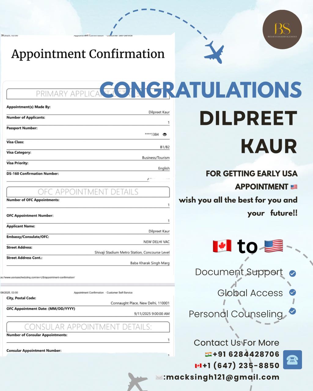 Believein Services specializes in facilitating USA visa appointments for B1/B2, F1/F2, and other categories, serving clients across India and Canada. We understand the complexities of the visa application process and are dedicated to providing a smooth and efficient experience. Our expert team is committed to guiding you through every step, ensuring all your documentation is in order and helping you secure your desired appointment with confidence. Let us help you achieve your travel or study aspirations in the USA!